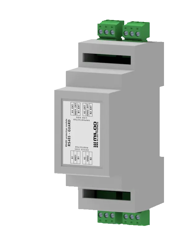 RS485-GUARD ist ein Überspannungsschutz für die Busse RS-485/RS-422. Er bietet einen mehrstufigen Schutz der Datenleitungen gemäß PN-EN 61643-21 (D1/C1/C2) und schützt Geräte vor Überspannungen und Störungen. Bandbreite 70 MHz, Stoßstrom bis zu 5 kA, Montage auf DIN-Schiene.