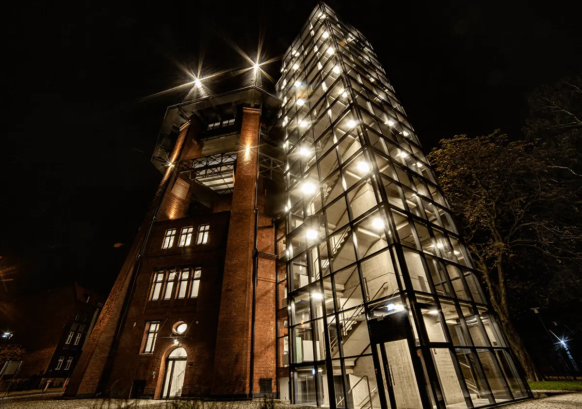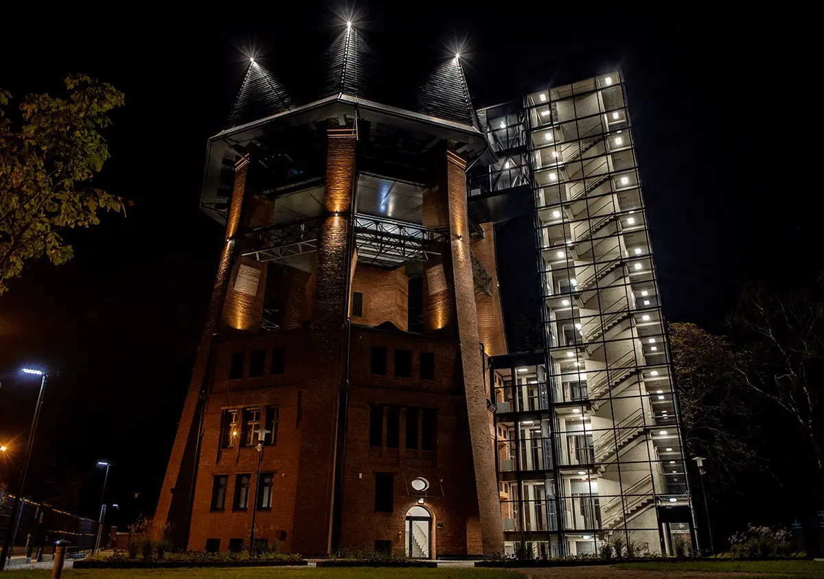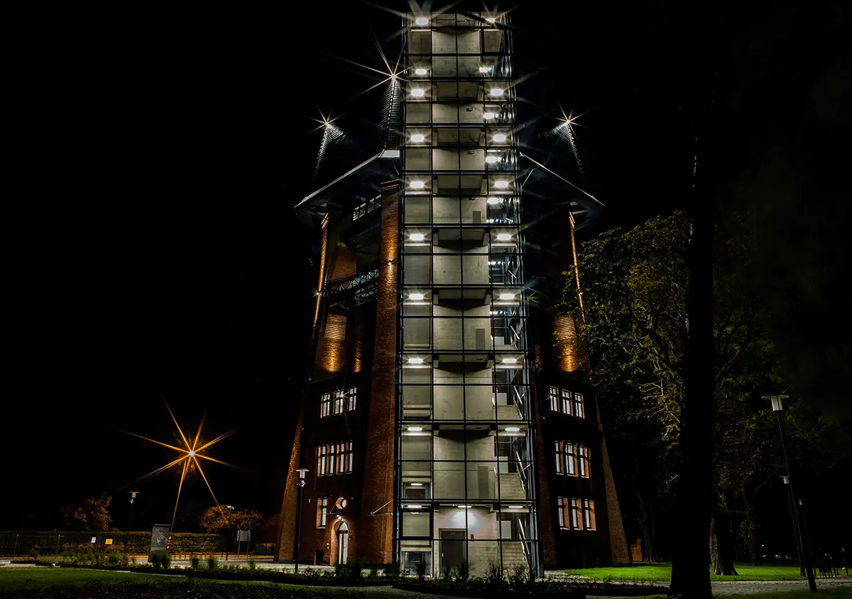 Located on Zamoyskiego Street in Zabrze, the water tower is one of the gems of industrial architecture that was recently at risk of demolition. MILOO-ELECTRONICS is responsible for the comprehensive lighting of the revitalized building.
